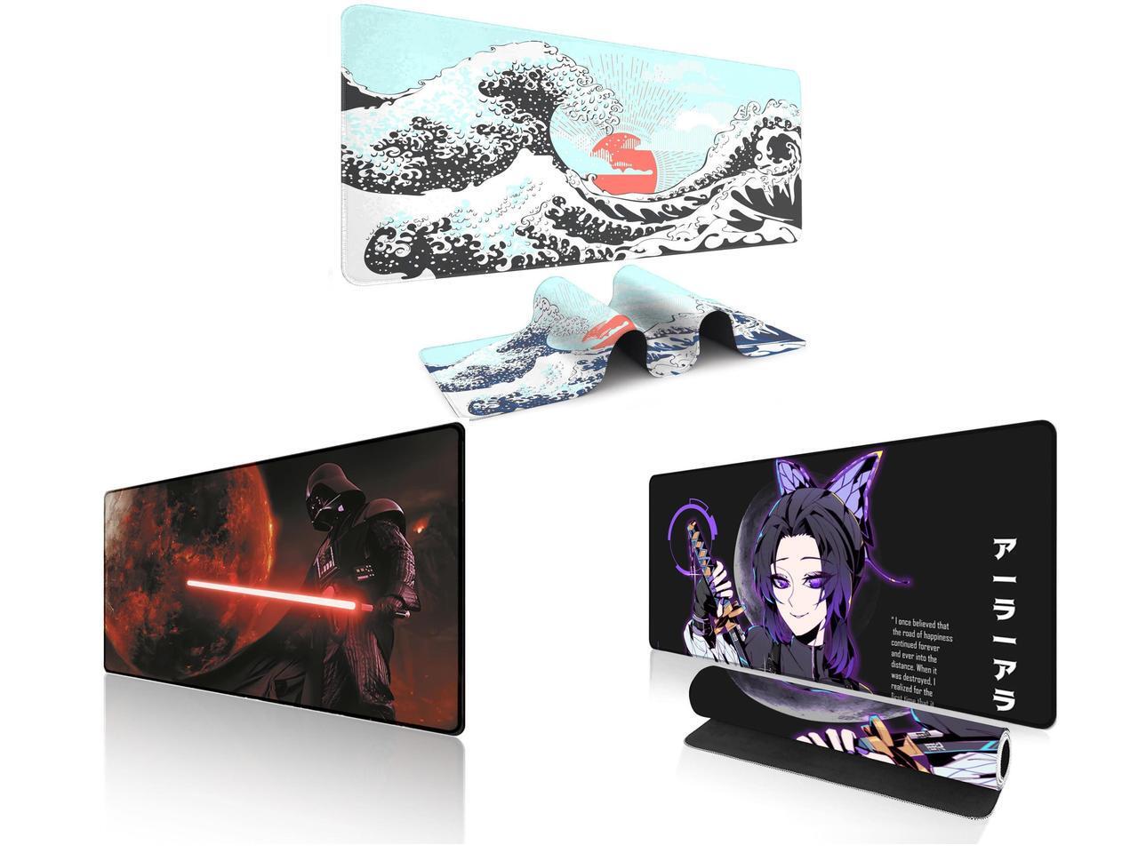 Alpha Fit Mint Green Great Wave Gaming Mouse Pad XXL (35.4" x 15.7") - Soft Teal Japanese Art Desk Mat - Fresh Nature Aesthetic Extended Keyboard Mat and 1 x Alpha Fit Starwar Gaming Mouse Pad XXL (31.5" x 11.8") - Star Wars Themed Large Mouse Pad - Extra Large Gaming Mouse Pads with Non-Slip Rubber Base & Stitched Edges for Sci-Fi Setup and 1 x Alpha Fit Anime Gaming Mouse Pad XXL (35.4" x 15.7") - Purple Butterfly Swordswoman - Large Mouse Pad Extended - Extra Large Gaming Mouse Pads Ara Ara Katana Style - 06