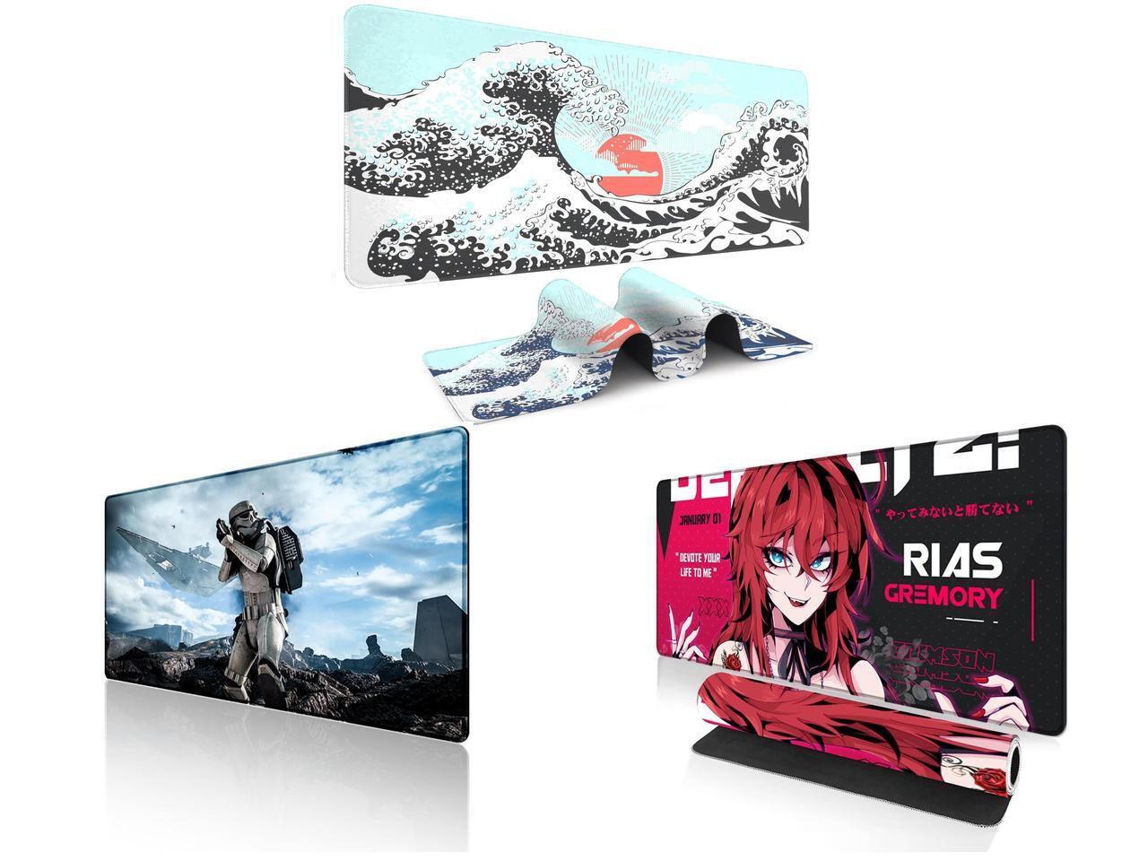 Alpha Fit Mint Green Great Wave Gaming Mouse Pad XXL (35.4" x 15.7") - Soft Teal Japanese Art Desk Mat - Fresh Nature Aesthetic Extended Keyboard Mat and 1 x Alpha Fit Star Wars Gaming Mouse Pad XXL (31.5" x 11.8") - Imperial Stormtrooper & Star Destroyer Battle Art - Large Extended Desk Mat - Non-Slip Rubber Base for PC & Laptop Gaming Setup and 1 x Alpha Fit Anime Gaming Mouse Pad XXL (35.4" x 15.7") - Crimson Red Haired Demon Girl - Large Mouse Pad Extended - Extra Large Gaming Mouse Pads Gothic Waifu Style - 01