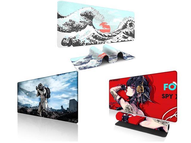 Alpha Fit Mint Green Great Wave Gaming Mouse Pad XXL (35.4" x 15.7") - Soft Teal Japanese Art Desk Mat - Fresh Nature Aesthetic Extended Keyboard Mat and 1 x Alpha Fit Star Wars Gaming Mouse Pad XXL (31.5" x 11.8") - Imperial Stormtrooper & Star Destroyer Battle Art - Large Extended Desk Mat - Non-Slip Rubber Base for PC & Laptop Gaming Setup and 1 x Alpha Fit Anime Gaming Mouse Pad XXL (35.4" x 15.7") - Red Rose Assassin Girl - Large Mouse Pad Extended - Extra Large Gaming Mouse Pads Secret Agent Style - 11