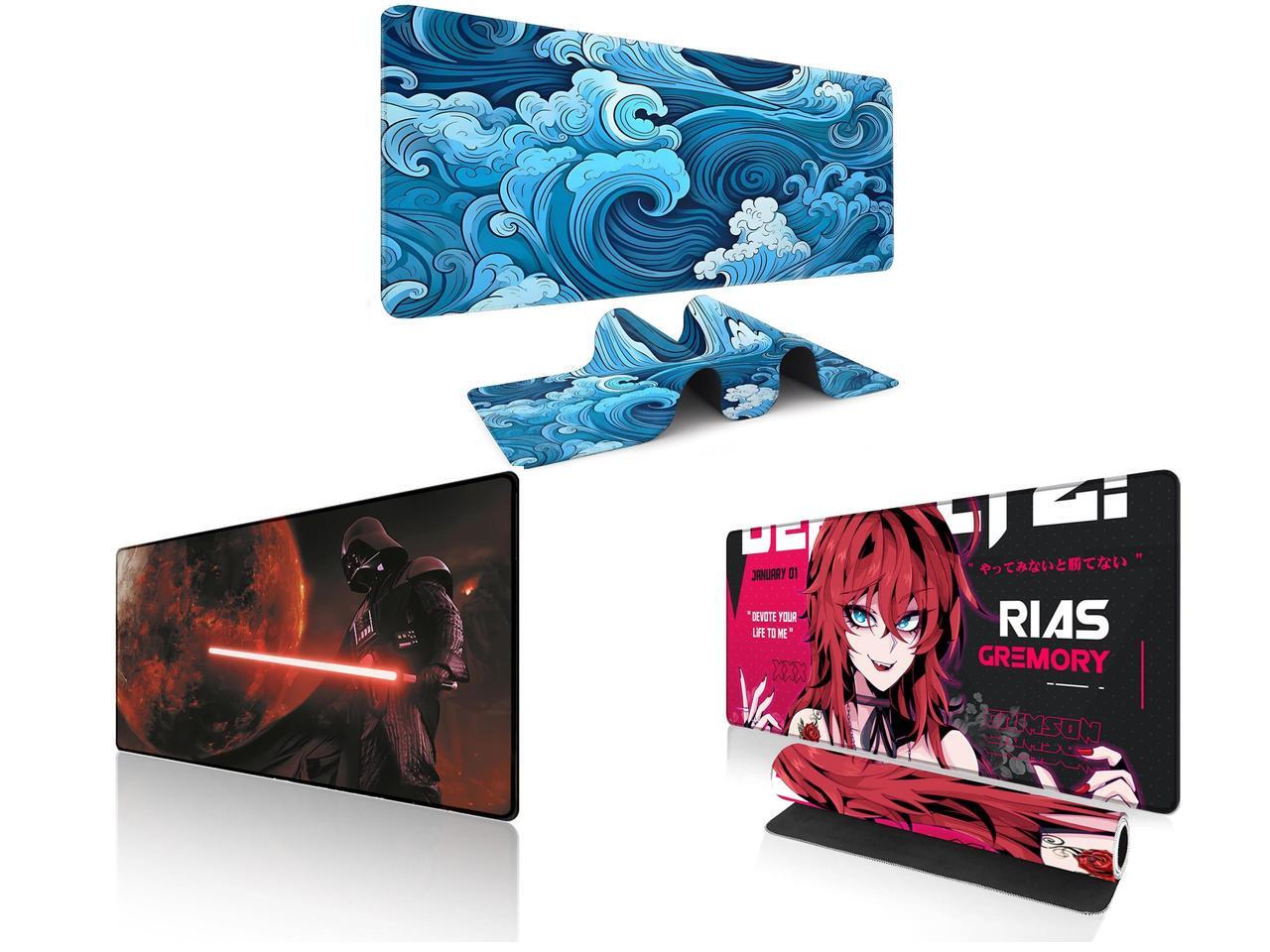 Alpha Fit Classic Great Wave off Kanagawa Gaming Mouse Pad XXL (35.4" x 15.7") - Traditional Blue Japanese Art Desk Mat - Non-Slip Rubber Base for Office and 1 x Alpha Fit Starwar Gaming Mouse Pad XXL (31.5" x 11.8") - Star Wars Themed Large Mouse Pad - Extra Large Gaming Mouse Pads with Non-Slip Rubber Base & Stitched Edges for Sci-Fi Setup and 1 x Alpha Fit Anime Gaming Mouse Pad XXL (35.4" x 15.7") - Crimson Red Haired Demon Girl - Large Mouse Pad Extended - Extra Large Gaming Mouse Pads Gothic Waifu Style - 01