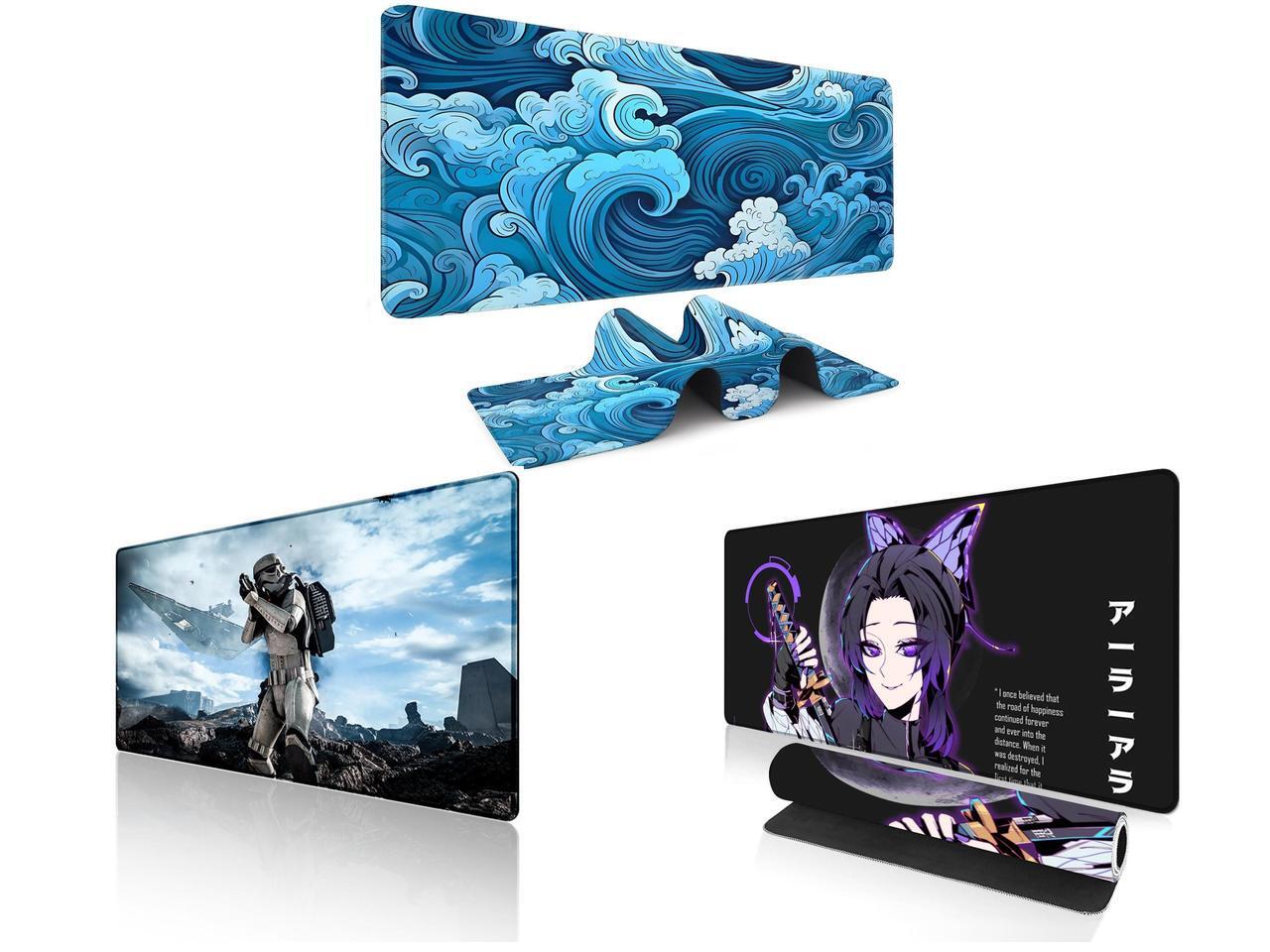 Alpha Fit Classic Great Wave off Kanagawa Gaming Mouse Pad XXL (35.4" x 15.7") - Traditional Blue Japanese Art Desk Mat - Non-Slip Rubber Base for Office and 1 x Alpha Fit Star Wars Gaming Mouse Pad XXL (31.5" x 11.8") - Imperial Stormtrooper & Star Destroyer Battle Art - Large Extended Desk Mat - Non-Slip Rubber Base for PC & Laptop Gaming Setup and 1 x Alpha Fit Anime Gaming Mouse Pad XXL (35.4" x 15.7") - Purple Butterfly Swordswoman - Large Mouse Pad Extended - Extra Large Gaming Mouse Pads Ara Ara Katana Style - 06