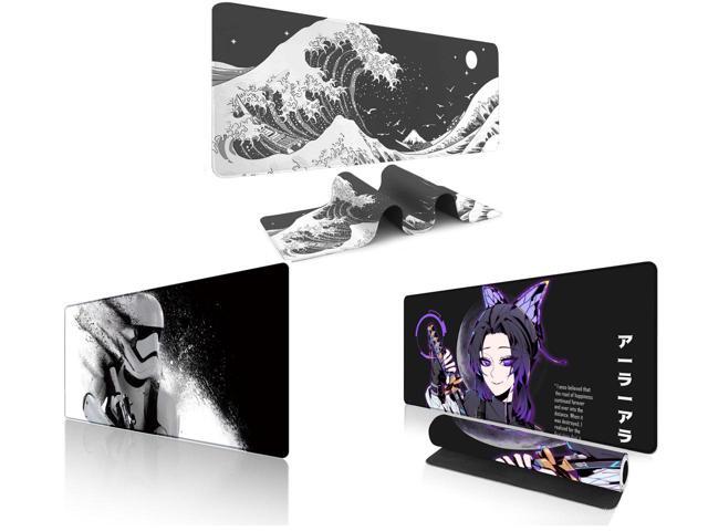 Alpha Fit Black & White Great Wave Gaming Mouse Pad XXL (35.4" x 15.7") - Monochrome Ink Wash Japanese Art Desk Mat - Minimalist Setup with Stitched Edges and 1 x Alpha Fit Star Wars Gaming Mouse Pad XXL (31.5" x 11.8") - Stormtrooper Shatter Black & White - Large Mouse Pad Extended - Sci-Fi Galaxy Empire Desk Mat 12 and 1 x Alpha Fit Anime Gaming Mouse Pad XXL (35.4" x 15.7") - Purple Butterfly Swordswoman - Large Mouse Pad Extended - Extra Large Gaming Mouse Pads Ara Ara Katana Style - 06