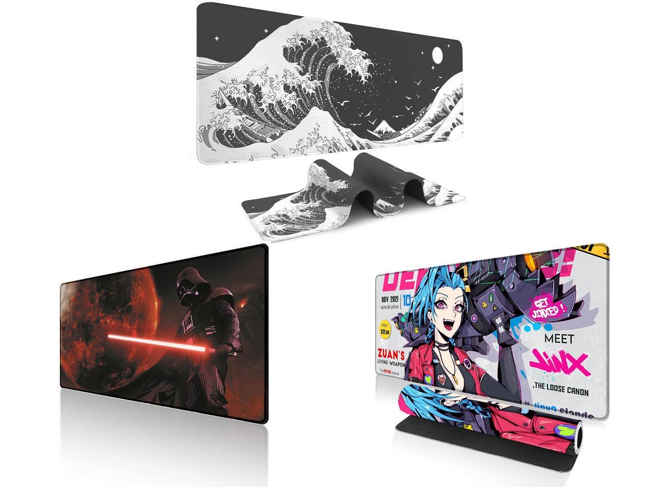 Alpha Fit Black & White Great Wave Gaming Mouse Pad XXL (35.4" x 15.7") - Monochrome Ink Wash Japanese Art Desk Mat - Minimalist Setup with Stitched Edges and 1 x Alpha Fit Starwar Gaming Mouse Pad XXL (31.5" x 11.8") - Star Wars Themed Large Mouse Pad - Extra Large Gaming Mouse Pads with Non-Slip Rubber Base & Stitched Edges for Sci-Fi Setup and 1 x Alpha Fit Anime Gaming Mouse Pad XXL (35.4" x 15.7") - Blue Punk Graffiti Girl - Large Mouse Pad Extended - Extra Large Gaming Mouse Pads Loose Cannon Style - 03