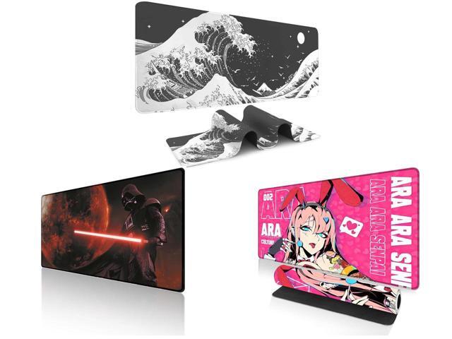 Alpha Fit Black & White Great Wave Gaming Mouse Pad XXL (35.4" x 15.7") - Monochrome Ink Wash Japanese Art Desk Mat - Minimalist Setup with Stitched Edges and 1 x Alpha Fit Starwar Gaming Mouse Pad XXL (31.5" x 11.8") - Star Wars Themed Large Mouse Pad - Extra Large Gaming Mouse Pads with Non-Slip Rubber Base & Stitched Edges for Sci-Fi Setup and 1 x Alpha Fit Anime Gaming Mouse Pad XXL (35.4" x 15.7") - Pink Bunny Girl Waifu - Large Mouse Pad Extended - Extra Large Gaming Mouse Pads Ara Ara Senpai Style - 04