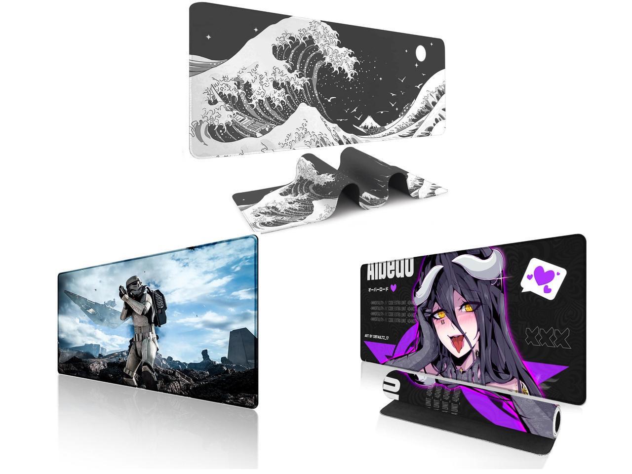 Alpha Fit Black & White Great Wave Gaming Mouse Pad XXL (35.4" x 15.7") - Monochrome Ink Wash Japanese Art Desk Mat - Minimalist Setup with Stitched Edges and 1 x Alpha Fit Star Wars Gaming Mouse Pad XXL (31.5" x 11.8") - Imperial Stormtrooper & Star Destroyer Battle Art - Large Extended Desk Mat - Non-Slip Rubber Base for PC & Laptop Gaming Setup and 1 x Alpha Fit Anime Gaming Mouse Pad XXL (35.4" x 15.7") - Dark Fantasy Succubus Girl - Large Mouse Pad Extended - Extra Large Gaming Mouse Pads Purple Waifu Style - 02
