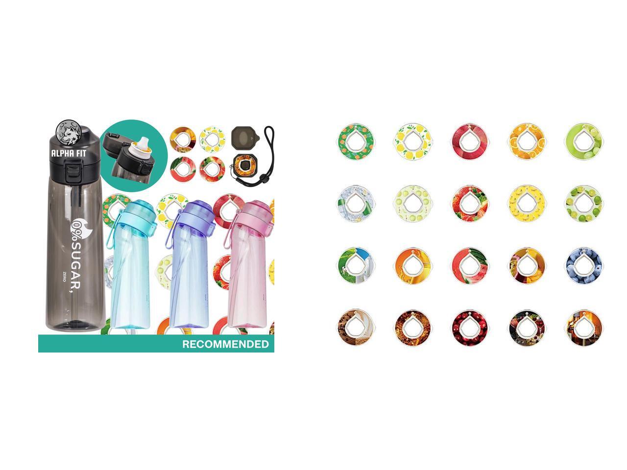 • Air Up Compatible Flavored Water Pods: Enjoy authentic flavored water technology that works with all Alpha Fit flavored bottle and flavored pods - zero sugar, zero calories, pure deliciousness