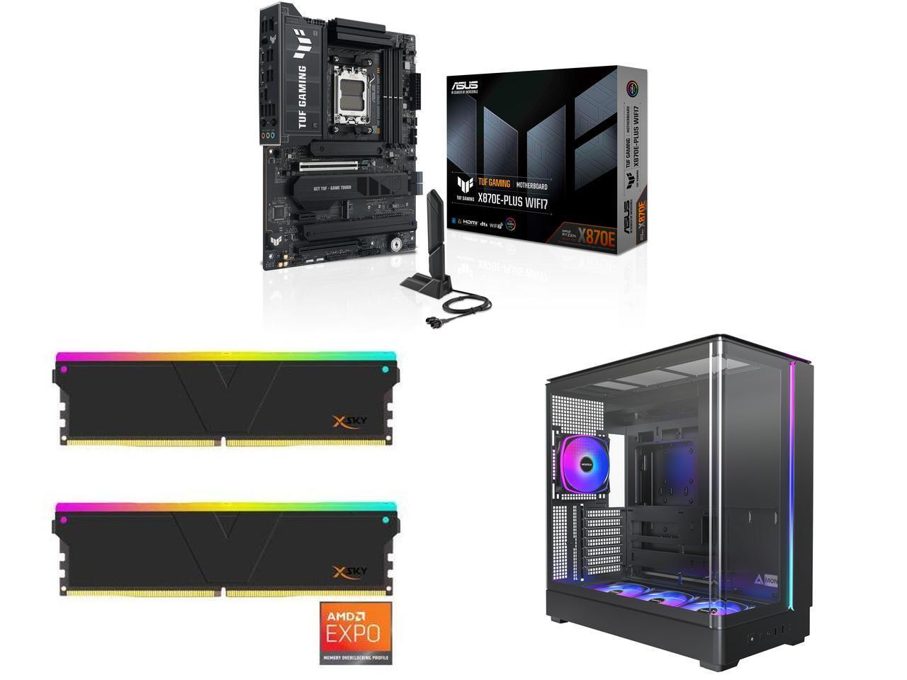 | Memory Feature | Supports up to 8000+MT/s (OC) with Ryzen 9000 & 8000 & 7000 Series Processors, ECC and Non-ECC Un-buffered DIMM Dual channel memory architecture Supports AMD Extended Profiles for Overclocking (EXPO) ASUS Enhanced Memory Profile (AEMP) |