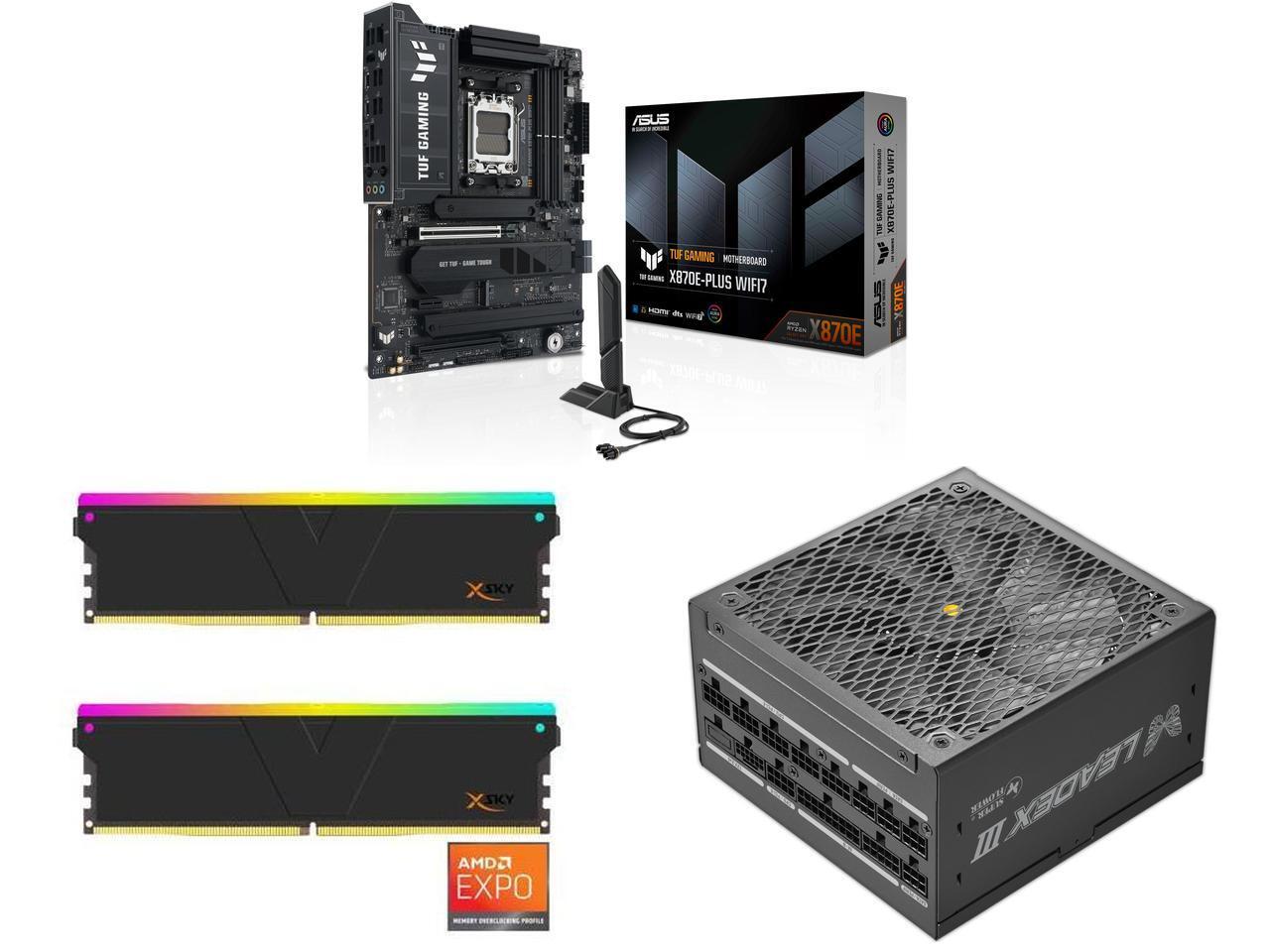 ASUS TUF GAMING X870E-PLUS WIFI7 AMD X870E ATX Motherboard with 16+2+1 80A Power Stages, DDR5 Support with AEMP, PCIe 5.0 x16 with PCIe Slot Q-Release Slim, Four M.2 Slots, WiFi 7 with ASUS Q-Antenna V-COLOR Manta XSky DDR5 32GB (2x16GB) 64