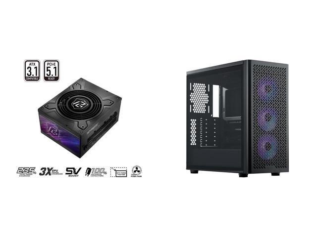 ASRock PG-850PSF 850W Power Supply Cooler Master Elite 502 ATX High Airflow Minimalist PC Case, 410mm GPU Max, Compatible RTX 5090|RX 7090 XT, 360mm AIO Max, Type C, Tempered Glass, Triple 120mm aRGB PWM Fan, Intakes Grill