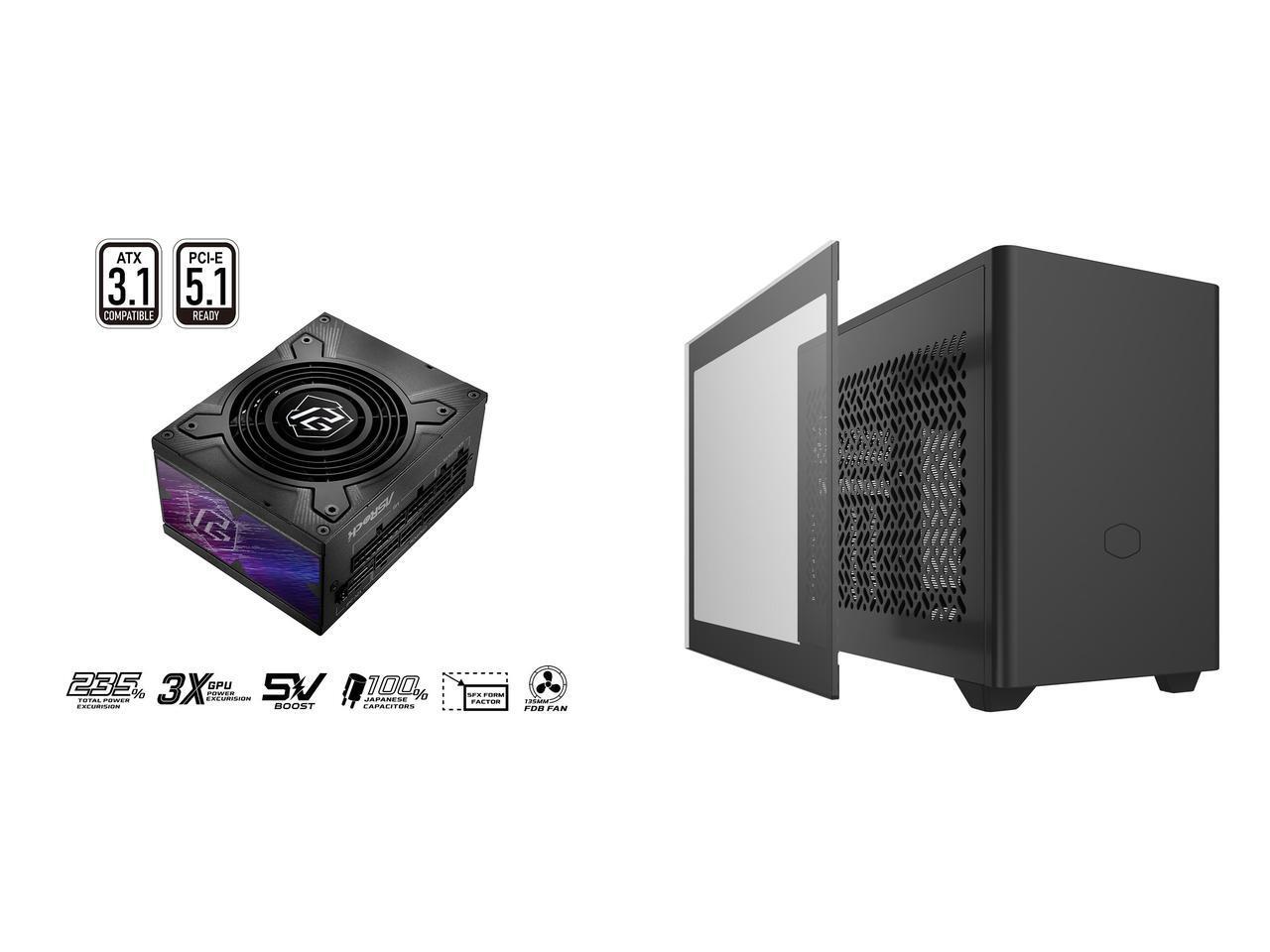 ASRock PG-850PSF 850W Power Supply Cooler Master NR200 Mini-ITX PC Case - 280mm Radiator Support, Fits up to 6 x 120mm Fans, Vertical GPU Mount with 330mm GPU Clearance, SFX PSU, Compact High Airflow ITX Gaming Mini Tower, Black
