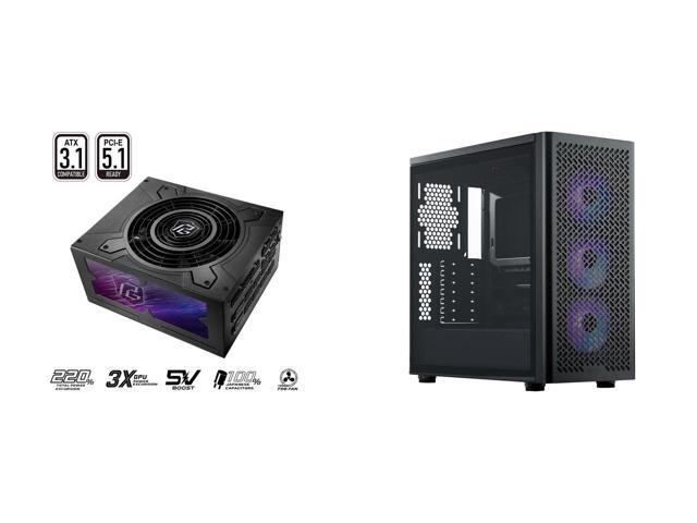 ASRock PG-1600G 1600 W Power Supply Cooler Master Elite 502 ATX High Airflow Minimalist PC Case, 410mm GPU Max, Compatible RTX 5090|RX 7090 XT, 360mm AIO Max, Type C, Tempered Glass, Triple 120mm aRGB PWM Fan, Intakes Grill