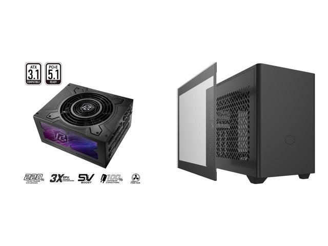 ASRock PG-1600G 1600 W Power Supply Cooler Master NR200 Mini-ITX PC Case - 280mm Radiator Support, Fits up to 6 x 120mm Fans, Vertical GPU Mount with 330mm GPU Clearance, SFX PSU, Compact High Airflow ITX Gaming Mini Tower, Black