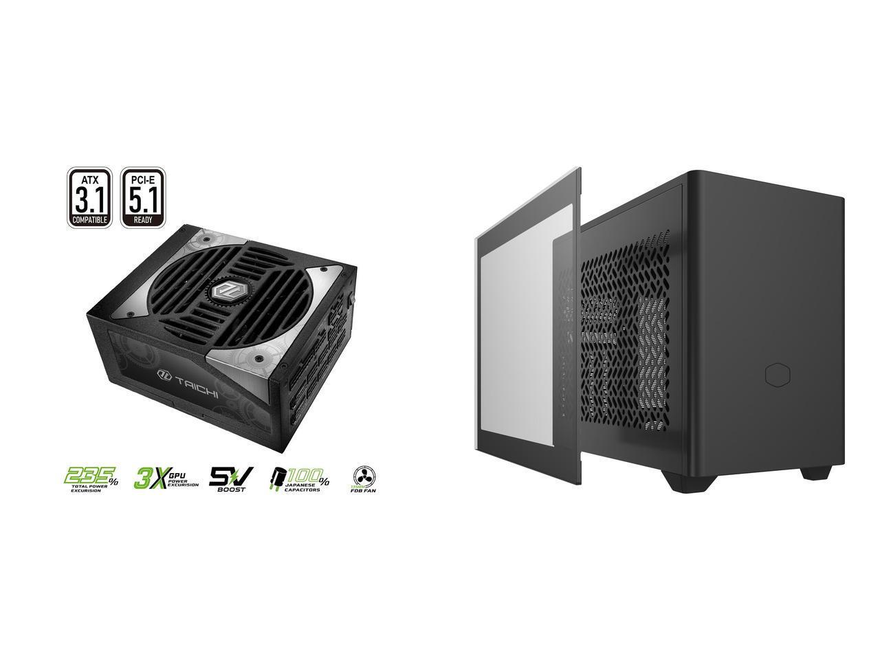 ASRock TC-1300T 1300 W Power Supply Cooler Master NR200 Mini-ITX PC Case - 280mm Radiator Support, Fits up to 6 x 120mm Fans, Vertical GPU Mount with 330mm GPU Clearance, SFX PSU, Compact High Airflow ITX Gaming Mini Tower, Black