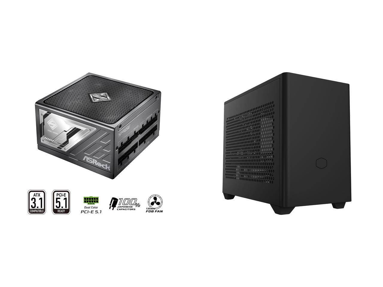 ASRock SL-850P 850W Power Supply Cooler Master NR200 SFF Small Form Factor Mini-ITX Case with Vented Panel, Triple-slot GPU, Tool-Free and 360 Degree Accessibility