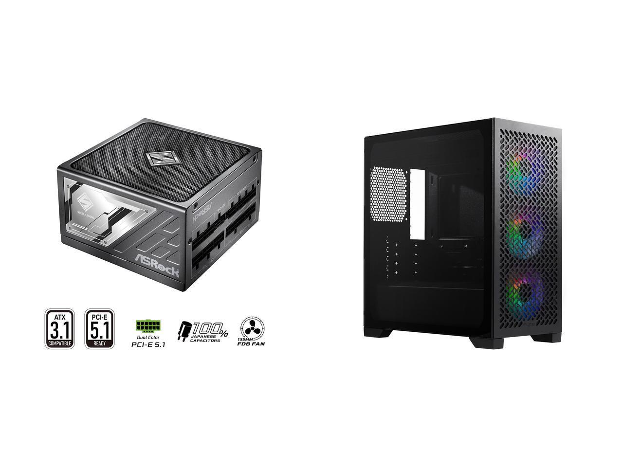 ASRock SL-1000P 1000W Power Supply Cooler Master Elite 302 Micro-ATX High Airflow Minimalist PC Case, 365mm GPU Max, 280mm AIO Max, Type C, Tempered Glass, Triple 120mm aRGB Fan, Intakes Grill, Breathable PSU Shroud