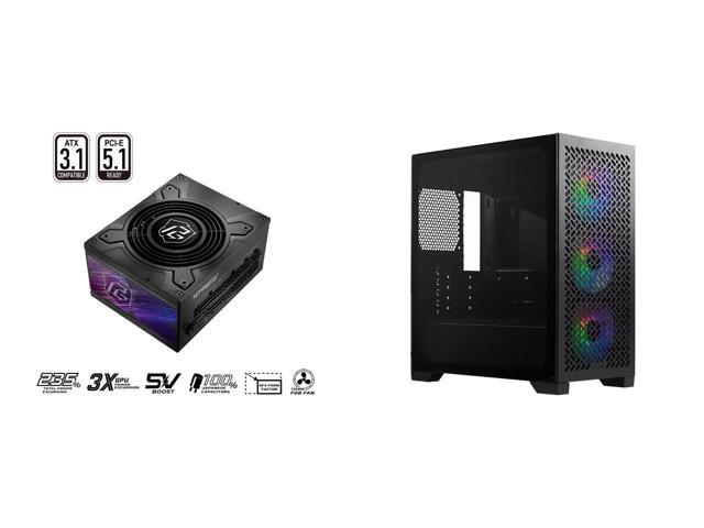 ASRock PG-850PSF 850W Power Supply Cooler Master Elite 302 Micro-ATX High Airflow Minimalist PC Case, 365mm GPU Max, 280mm AIO Max, Type C, Tempered Glass, Triple 120mm aRGB Fan, Intakes Grill, Breathable PSU Shroud