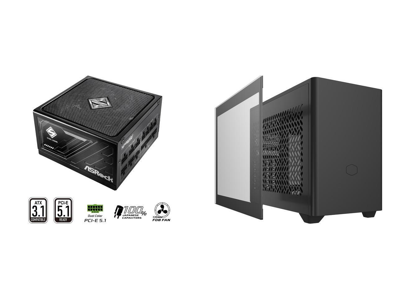 ASRock SL-850G 850W Power Supply Cooler Master NR200 Mini-ITX PC Case - 280mm Radiator Support, Fits up to 6 x 120mm Fans, Vertical GPU Mount with 330mm GPU Clearance, SFX PSU, Compact High Airflow ITX Gaming Mini Tower, Black