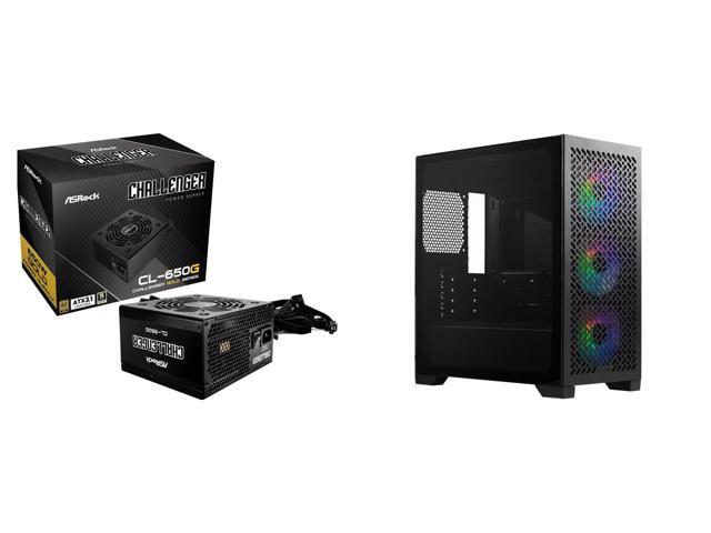 ASRock CL-650G 650 W Power Supply Cooler Master Elite 302 Micro-ATX High Airflow Minimalist PC Case, 365mm GPU Max, 280mm AIO Max, Type C, Tempered Glass, Triple 120mm aRGB Fan, Intakes Grill, Breathable PSU Shroud