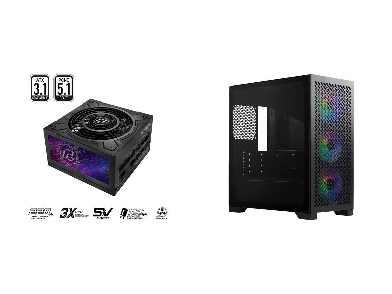 ASRock PG-1000G 1000W Power Supply Cooler Master Elite 302 Micro-ATX High Airflow Minimalist PC Case, 365mm GPU Max, 280mm AIO Max, Type C, Tempered Glass, Triple 120mm aRGB Fan, Intakes Grill, Breathable PSU Shroud