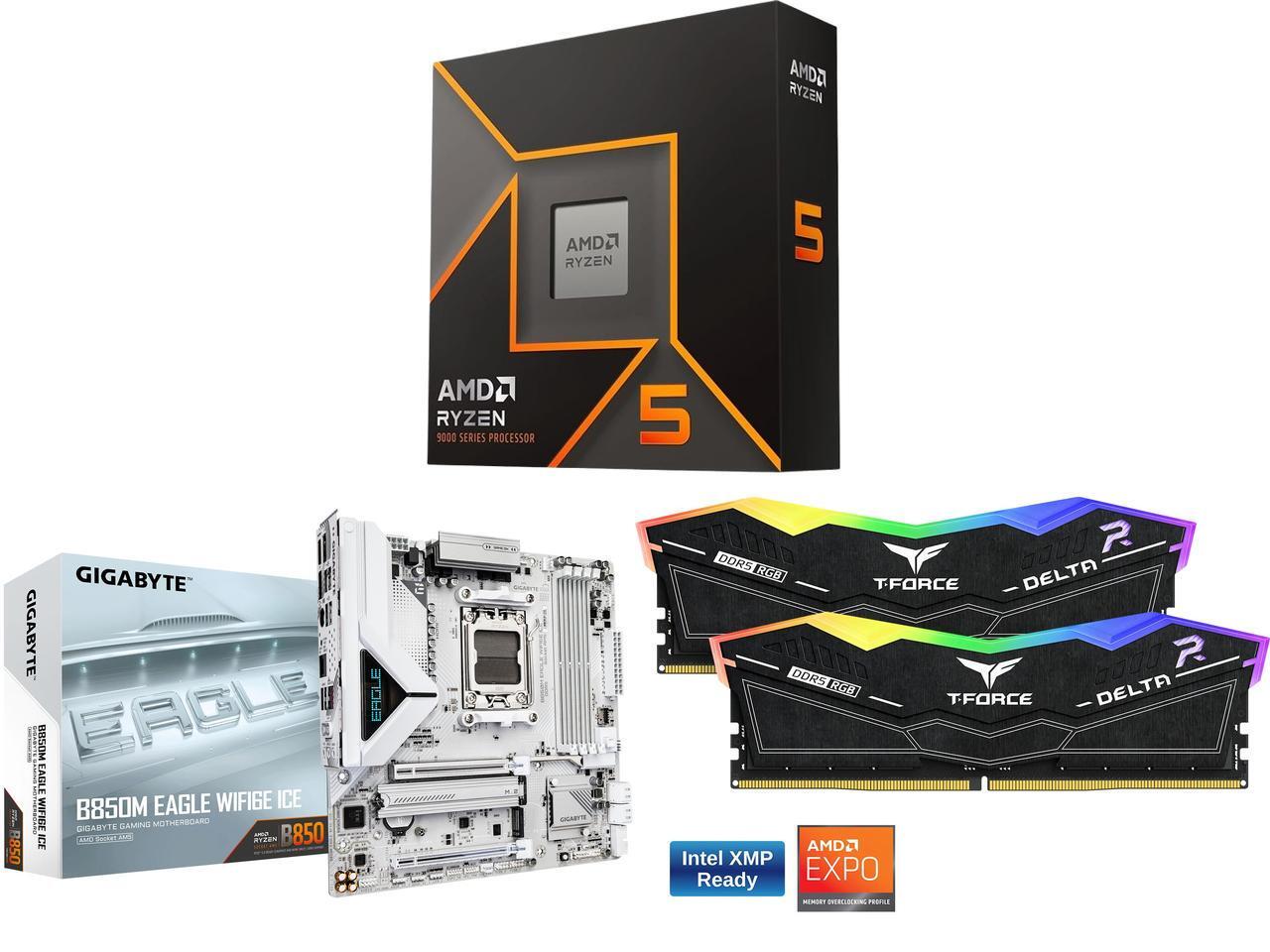 CPU Motherboard Memory Combo - AMD Ryzen 5 9600X Bundle with GIGABYTE B850M EAGLE WF6E ICE and Team Group FF3D516G6000HC38ADC01
