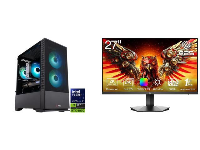 ABS Cyclone Aqua Gaming PC - Windows 11 - Intel Core Ultra 7 265KF - GeForce RTX 5070 - DLSS 4 - AI-Powered Performance - 32GB DDR5 6400 MHz - 2TB M.2 SSD ABS 27" QHD 2K 1440P 180Hz Fast IPS with AMD FreeSync (AMD Adaptive Sync) 1ms HDR400,