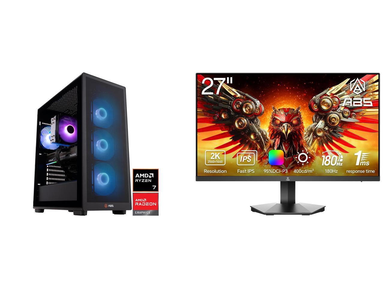 ABS Stratos Ruby Gaming PC - Windows 11 - AMD Ryzen 7 9700X - Radeon RX 9070 XT - 32GB DDR5 6400MHz - 1TB M.2 SSD ABS 27" QHD 2K 1440P 180Hz Fast IPS with AMD FreeSync (AMD Adaptive Sync) 1ms HDR400, DCI-P3 95% Gaming Computer Monitor GQ271