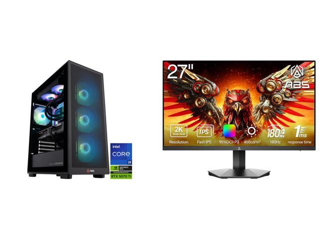ABS Stratos Aqua Gaming PC Powered by Asus - Windows 11 - Intel Core i9-14900KF - RTX 5070 Ti 16GB - DLSS 4 - AI-Powered Performance - 32GB DDR5 6400 - 2TB M.2 SSD ABS 27" QHD 2K 1440P 180Hz Fast IPS with AMD FreeSync (AMD Adaptive Sync) 1m