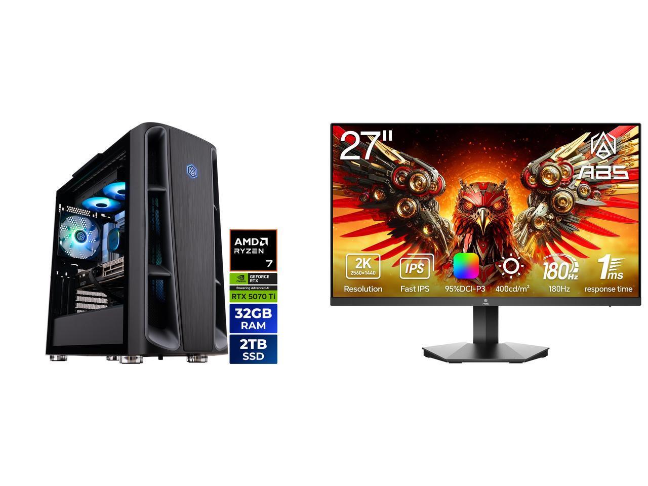 ABS Kaze II Ruby Gaming PC - Windows 11 - AMD Ryzen 7 9800X3D - GeForce RTX 5070 Ti - DLSS 4 - AI-Powered Performance - 32GB DDR5 6000MHz - 2TB M.2 SSD ABS 27" QHD 2K 1440P 180Hz Fast IPS with AMD FreeSync (AMD Adaptive Sync) 1ms HDR400, DC