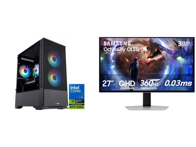 ABS Cyclone Aqua Gaming PC - Windows 11 - Intel Core 5 Processor 120 - GeForce RTX 5060 - DLSS 4 - AI-Powered Performance - 32GB DDR4 - 1TB M.2 NVMe SSD - CA120F5060 Samsung Odyssey G6 27" QHD 2K 1440P 360Hz FreeSync Premium Pro 0.03ms HDR