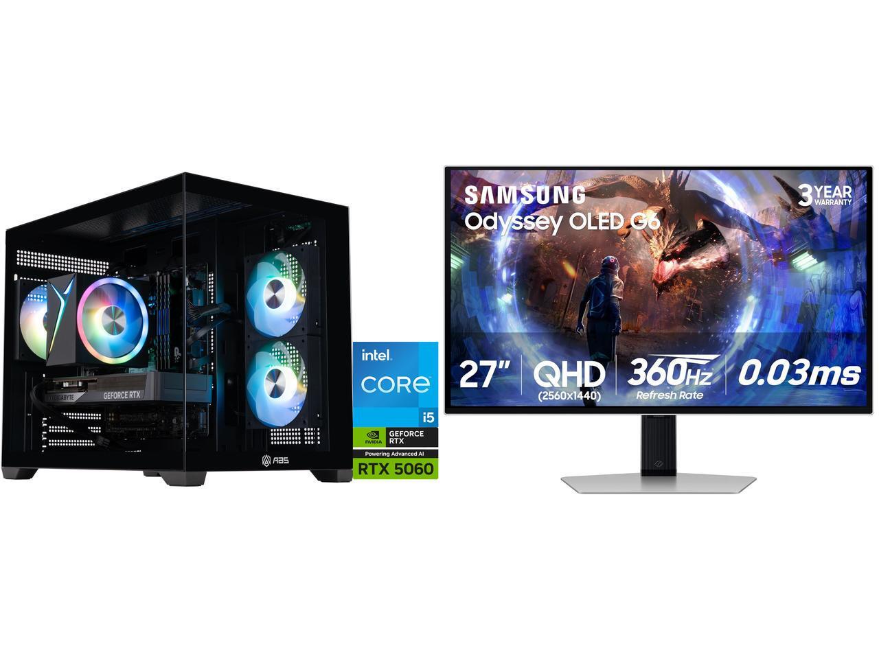 ABS Flux II Aqua Gaming PC - Windows 11 - Intel Core i5-14400F - GeForce RTX 5060 - DLSS 4 - AI-Powered Performance - 32GB DDR4 3200MHz - 1TB M.2 SSD Samsung Odyssey G6 27" QHD 2K 1440P 360Hz FreeSync Premium Pro 0.03ms HDR10+ PIP OLED Gami