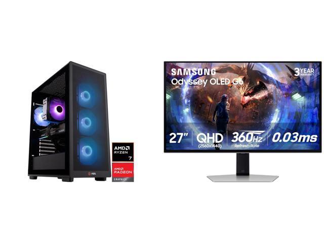 ABS Stratos Ruby Gaming PC - Windows 11 - AMD Ryzen 7 9700X - Radeon RX 9070 XT - 32GB DDR5 6400MHz - 1TB M.2 SSD Samsung Odyssey G6 27" QHD 2K 1440P 360Hz FreeSync Premium Pro 0.03ms HDR10+ PIP OLED Gaming Computer Monitor with Height Adju