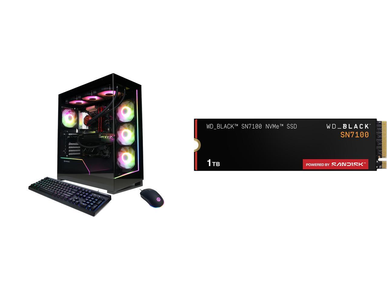 CyberpowerPC Gaming Desktop PC GM70928 AMD Ryzen 7 7800X3D 32GB DDR5 1TB NVMe SSD GeForce RTX 5070 Windows 11 Home WD_BLACK SN7100 M.2 2280 1TB PCI-Express 4.0 x4 TLC 3D NAND Internal Solid State Drive (SSD) WDS100T4X0E