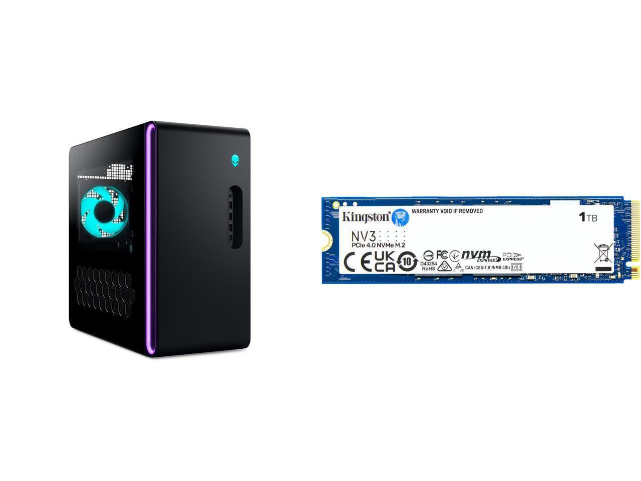Alienware Aurora Gaming Desktop ACT1250 - Intel Core Ultra 7 265F, 32GB DDR5 RAM, 1TB SSD, NVIDIA GeForce RTX 5070, 1000W Platinum Rated PSU, Windows 11 Home, Clear Panel - Black Kingston NV3 M.2 2280 1TB PCIe 4.0 x4 NVMe Internal Solid Sta