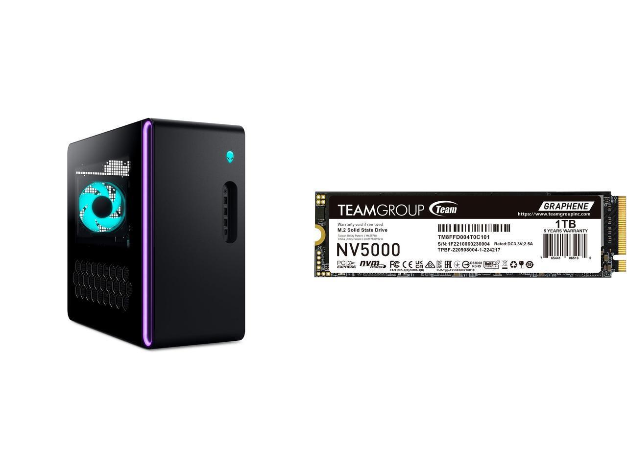 Alienware Aurora Gaming Desktop ACT1250 - Intel Core Ultra 7 265F, 32GB DDR5 RAM, 1TB SSD, NVIDIA GeForce RTX 5070, 1000W Platinum Rated PSU, Windows 11 Home, Clear Panel - Black Team Group NV5000 M.2 2280 1TB PCIe 4.0 x4 with NVMe Internal