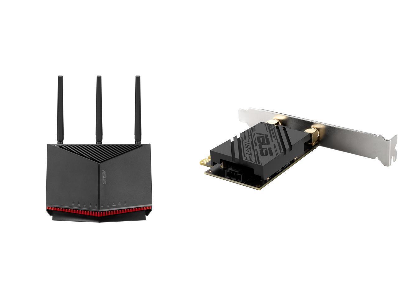 ASUS RT-BE86U BE6800 Dual-Band WiFi 7 Router, Supports 4096-QAM, MLO, AI WAN Detection, AiMesh, Subscription-Free Network Security, and Comprehensive VPN Features, Guest Network Pro, Gaming ASUS BE6500 Tri Band PCI-E WiFi 7 (802.11be), Blue
