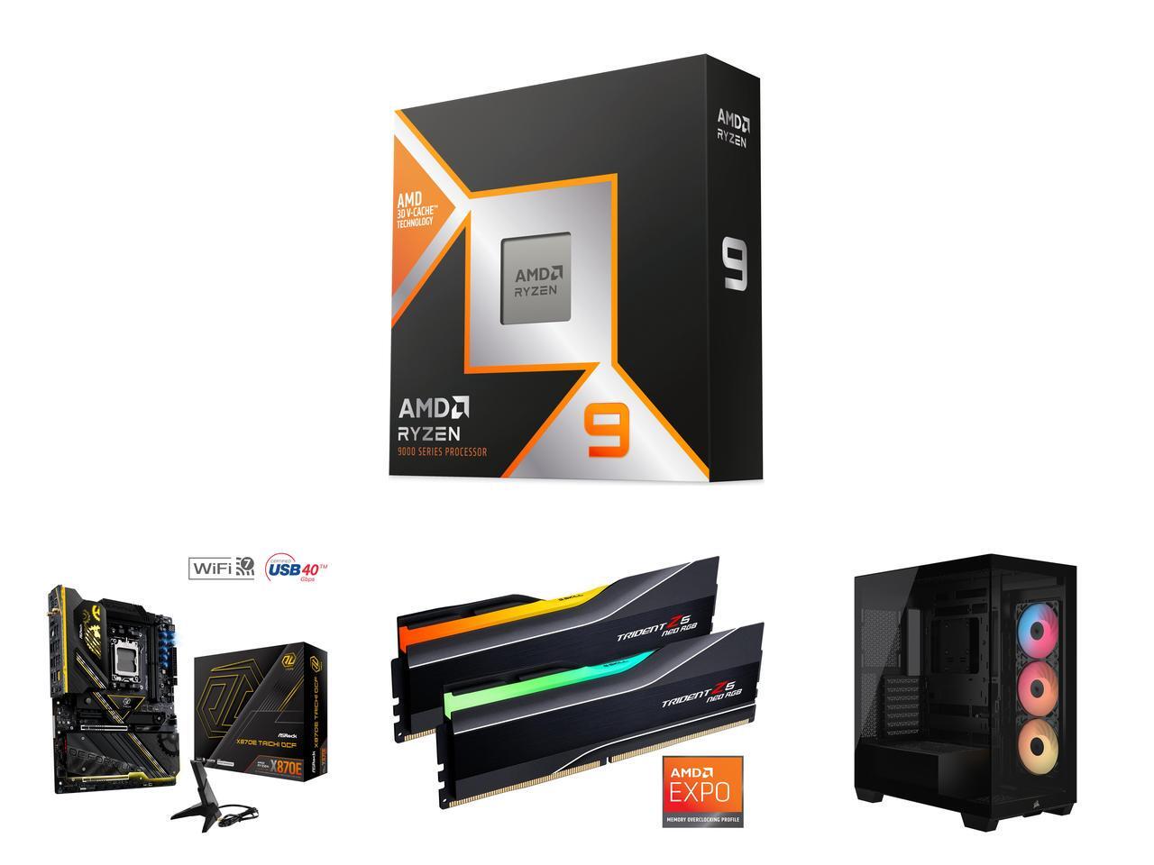 CPU Motherboard Memory Computer Case Combo - AMD Ryzen 9 9950X3D Bundle with ASRock X870E Taichi OCF and G.SKILL F5-6000J3444F64GX2-TZ5NR and Corsair CC-9011322-WW