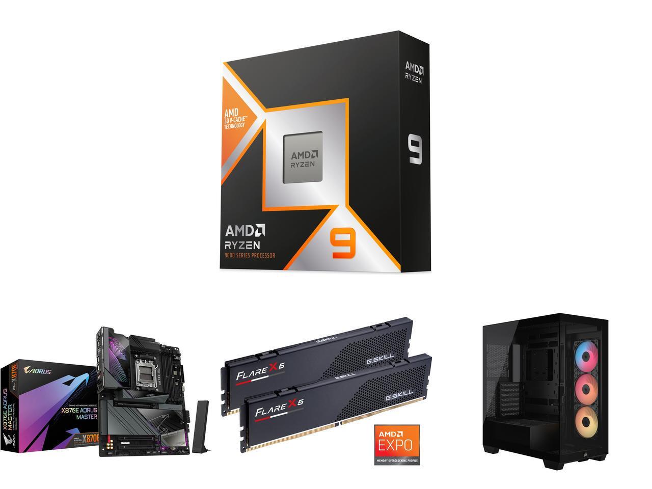 CPU Motherboard Memory Computer Case Combo - AMD Ryzen 9 9950X3D Bundle with GIGABYTE X870E AORUS MASTER and G.SKILL F5-6000J3444F64GX2-FX5 and Corsair CC-9011322-WW
