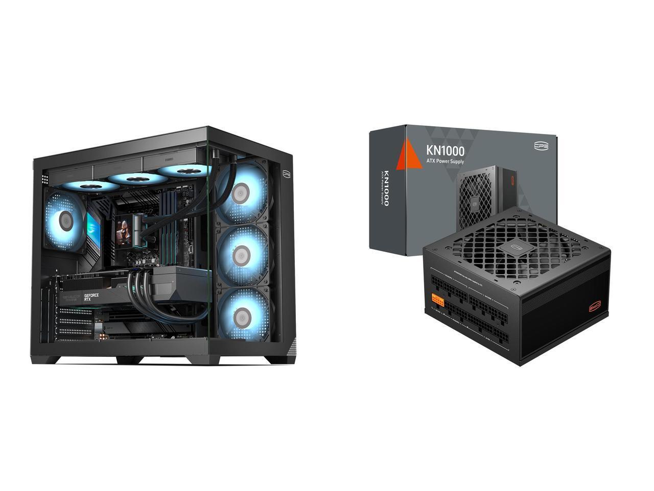 PCCOOLER CPS C3 T700 PC Case, Dual-Chamber Mid-Tower ATX Case, High-Airflow Computer Case, BTF Motherboard Supports, Sturdy Tempered Glass Front & Side Panels, Black (Fans Not Included) and 1 x PCCOOLER CPS KN1000 Fully Modular Power Supply, 80 PLUS Gold 1000W PSU, Native 12V-2x6 Connector, ATX 3.1 & PCIe 5.1 Ready, Dual CPU Power Cables, 105°C Rated Japanese Capacitors, P3-KN1000-G1F