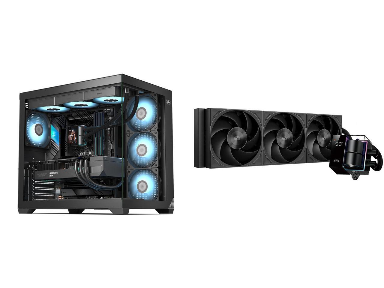 PCCOOLER CPS C3 T700 PC Case, Dual-Chamber Mid-Tower ATX Case, High-Airflow Computer Case, BTF Motherboard Supports, Sturdy Tempered Glass Front & Side Panels, Black (Fans Not Included) and 1 x PCCOOLER CPS DS360Pro Digital AlO CPU Liquid Cooler, 360mm Radiator, 310W TDP, ARGB LEDs & Digital Display, Aluminum Pump Cover, for Intel LGA20XX/1851/1700/1200/115X & AMD AM5/AM4, Black