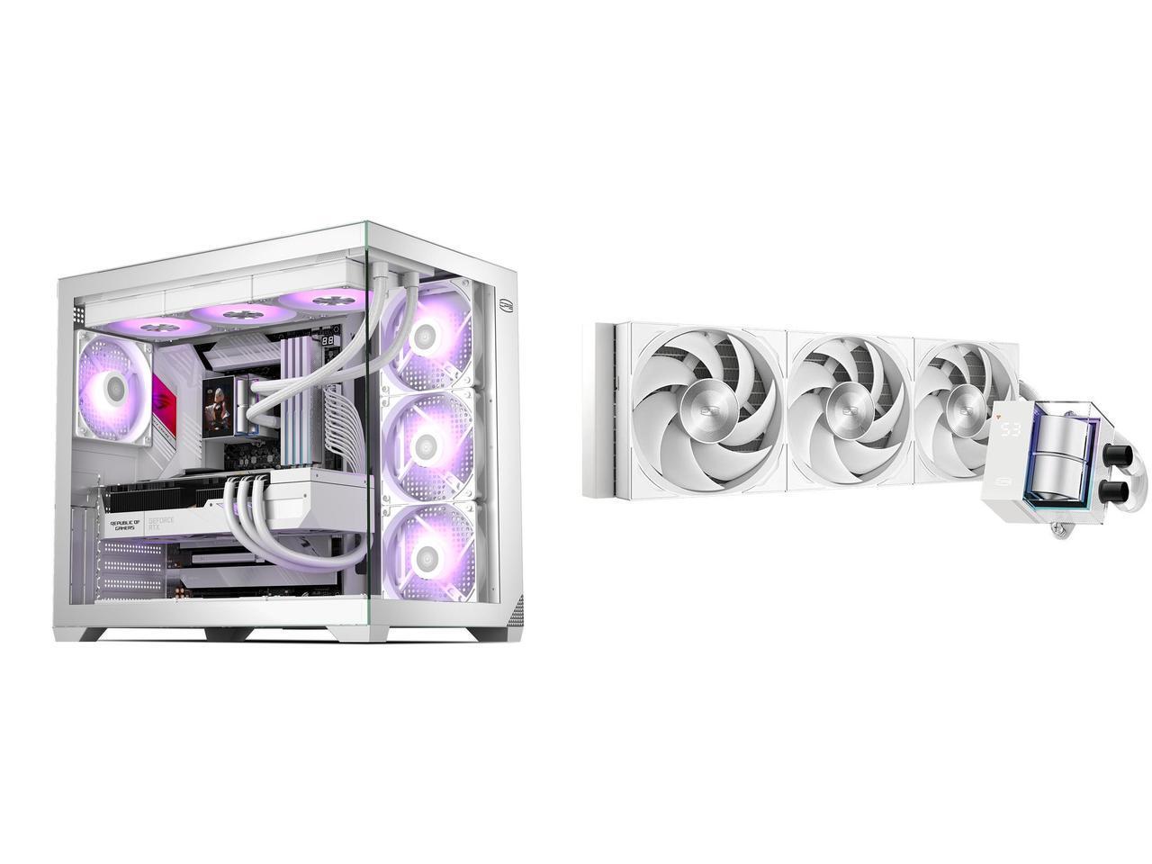 PCCOOLER CPS C3 T700 PC Case, Dual-Chamber Mid-Tower ATX Case, High-Airflow Computer Case, BTF Motherboard Supports, Sturdy Tempered Glass Front & Side Panels, White (Fans Not Included) and 1 x PCCOOLER CPS DS360Pro Digital AlO CPU Liquid Cooler, 360mm Radiator, 310W TDP, ARGB LEDs & Digital Display, Aluminum Pump Cover, for Intel LGA20XX/1851/1700/1200/115X & AMD AM5/AM4, White