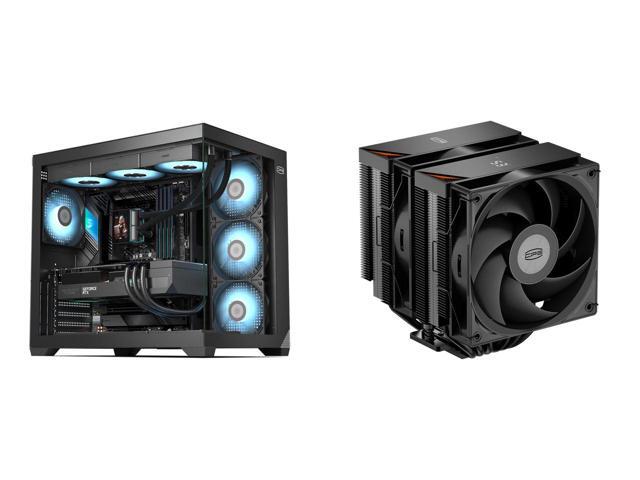 PCCOOLER CPS C3 T700 PC Case, Dual-Chamber Mid-Tower ATX Case, High-Airflow Computer Case, BTF Motherboard Supports, Sturdy Tempered Glass Front & Side Panels, Black (Fans Not Included) and 1 x PCCOOLER CPS RT620Pro Digital Dual Tower CPU Air Cooler, 6 Heat Pipes, 265W TDP, Digital Display Top Cover, 157mm Tall, Reinforced Structure, for Intel LGA1851/1700/1200/115X & AMD AM5/AM4, Black