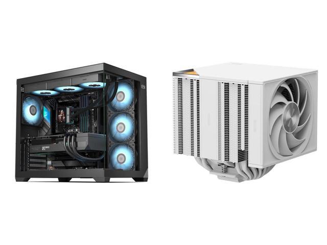 PCCOOLER CPS C3 T700 PC Case, Dual-Chamber Mid-Tower ATX Case, High-Airflow Computer Case, BTF Motherboard Supports, Sturdy Tempered Glass Front & Side Panels, Black (Fans Not Included) and 1 x PCCOOLER CPS RZ820 Dual Tower CPU Air Cooler, 8 Heat Pipes, 290W TDP, Magnetic Aluminum ARGB Top Cover, 165mm Tall, 120mm & 140mm PWM Fans, for Intel LGA 1851/1700/1200/115X/20XX & AMD AM5/AM4, White