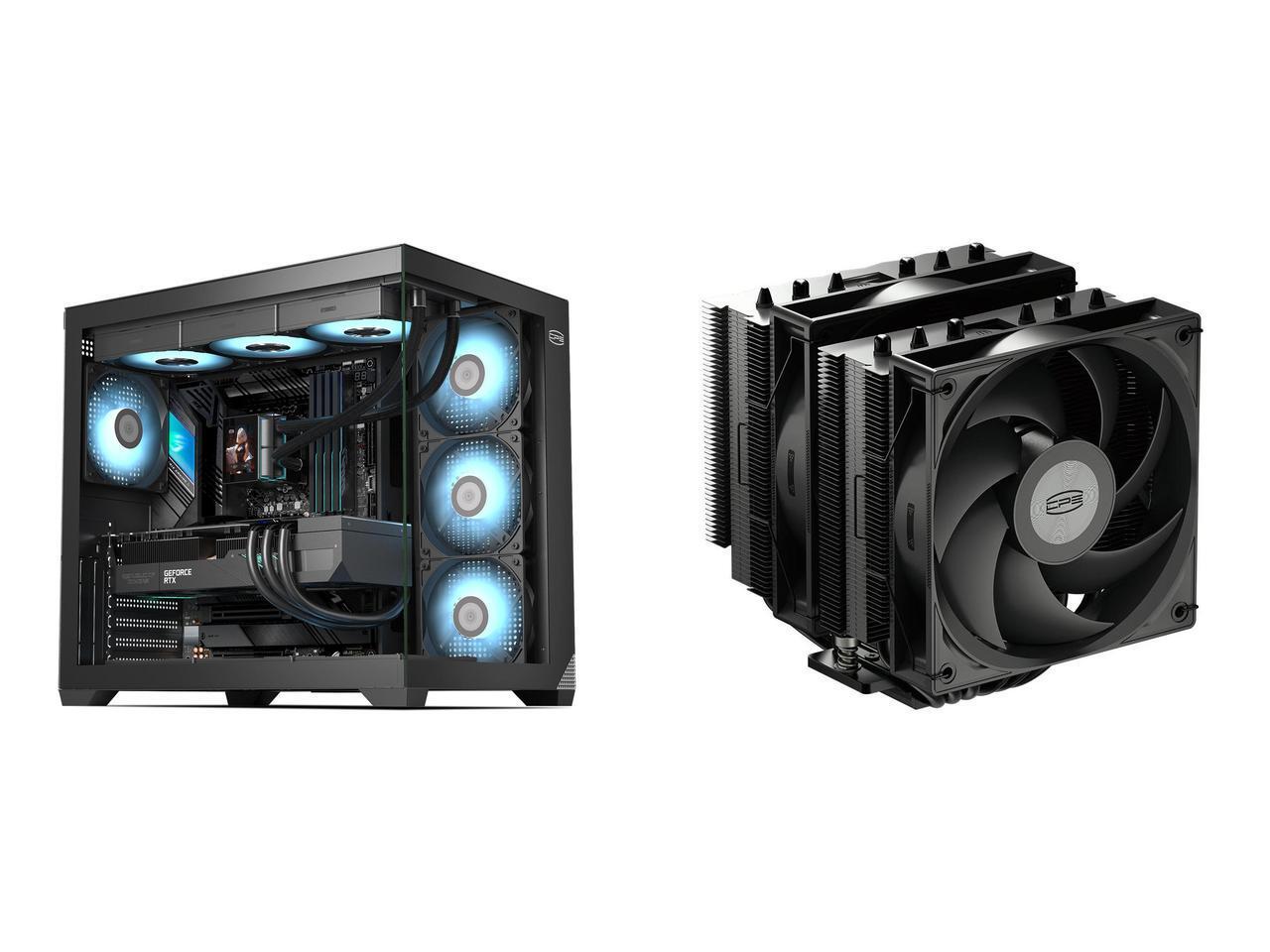 PCCOOLER CPS C3 T700 PC Case, Dual-Chamber Mid-Tower ATX Case, High-Airflow Computer Case, BTF Motherboard Supports, Sturdy Tempered Glass Front & Side Panels, Black (Fans Not Included) and 1 x PCCOOLER CPS RT620Pro Dual Tower CPU Air Cooler, 6 Heat Pipes, 265W TDP, 153mm Tall, 120mm PWM Slient Fans, Tower Reinforced Structure, for Intel LGA1851/1700/1200/115X & AMD AM5/AM4, Black