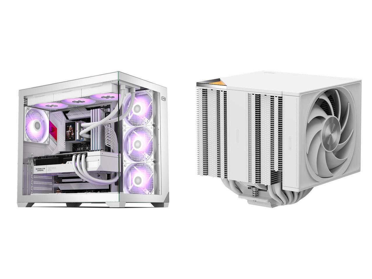 PCCOOLER CPS C3 T700 PC Case, Dual-Chamber Mid-Tower ATX Case, High-Airflow Computer Case, BTF Motherboard Supports, Sturdy Tempered Glass Front & Side Panels, White (Fans Not Included) and 1 x PCCOOLER CPS RZ820 Dual Tower CPU Air Cooler, 8 Heat Pipes, 290W TDP, Magnetic Aluminum ARGB Top Cover, 165mm Tall, 120mm & 140mm PWM Fans, for Intel LGA 1851/1700/1200/115X/20XX & AMD AM5/AM4, White
