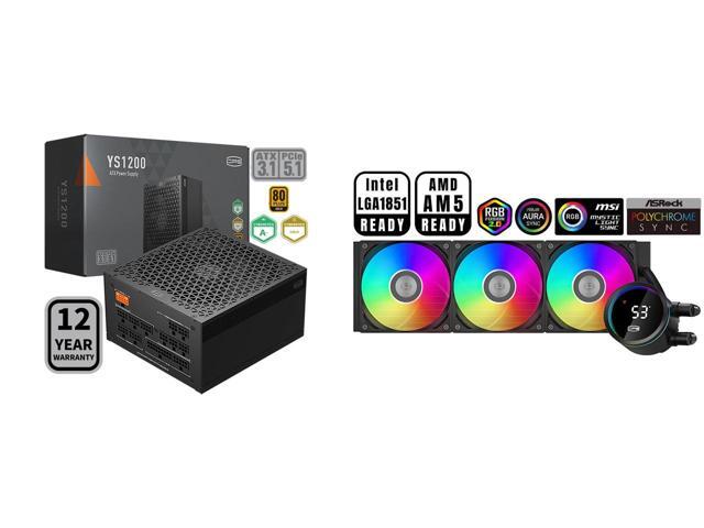 PCCOOLER CPS YS1200 Fully Modular Power Supply, 80 PLUS Gold 1200W PSU, 12V-2x6 Cable, ATX 3.1 & PCIe 5.1 Ready, 105°C Rated Japanese Capacitors, ECO Mode, 135mm FDB Fan, 12 Years Warranty and 1 x PCCOOLER CPS DA360 Pro ARGB Digital AIO CPU Liquid Cooler, 360mm Radiator, 300W TDP, 270° Rotatable Digital Display, Infinity Halo ARGB Effect, for Intel LGA 1851/1700/1200/115X & AMD AM5/AM4, Black