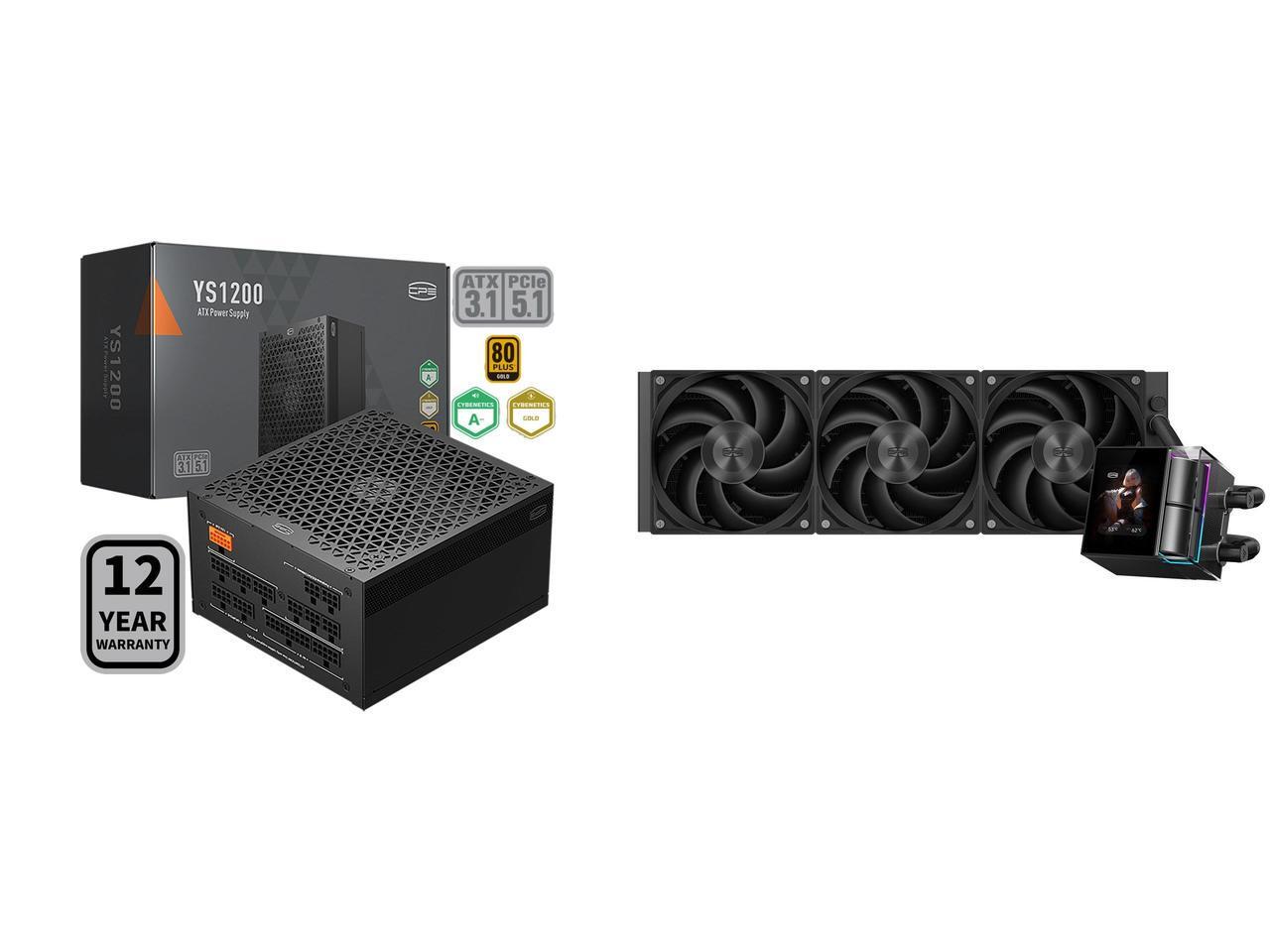 PCCOOLER CPS YS1200 Fully Modular Power Supply, 80 PLUS Gold 1200W PSU, 12V-2x6 Cable, ATX 3.1 & PCIe 5.1 Ready, 105°C Rated Japanese Capacitors, ECO Mode, 135mm FDB Fan, 12 Years Warranty and 1 x PCCOOLER CPS DS360 Display AIO CPU Liquid Cooler, 360mm Radiator, 315W TDP, ARGB LEDs & Customizable 2.4" IPS LCD Display, Ceramic Bearing, for Intel LGA 1851/1700/1200/115X & AMD AM5/AM4, Black