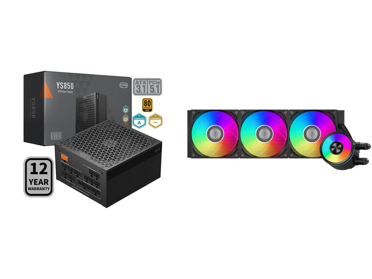 PCCOOLER CPS YS850 Fully Modular Power Supply, 80 PLUS Gold 850W PSU, 12V-2x6 Cable, ATX 3.1 & PCIe 5.1 Ready, 105°C Rated Japanese Capacitors, ECO Mode, 135mm FDB Fan, 12 Years Warranty and 1 x PCCOOLER CPS DA360 Pro ARGB AIO CPU Liquid Cooler, 360mm Radiator, 300W TDP, 360° Rotatable Waterblock, Infinity Halo ARGB Effect, for Intel LGA20XX/1851/1700/1200/115X & AMD AM5/AM4, Black