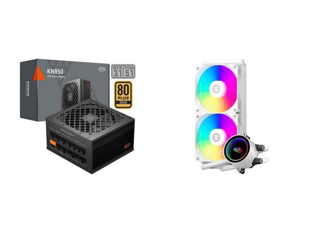 PCCOOLER CPS KN850 Fully Modular Power Supply, 80 PLUS Gold 850W PSU, Native 12V-2x6 Connector, ATX 3.1 & PCIe 5.1 Ready, Dual CPU Power Cables, 105°C Rated Japanese Capacitors, P3-KN850-G1F and 1 x PCCOOLER CPS DA240 ARGB AIO CPU Liquid Cooler, 240mm Radiator, 260W TDP, Infinity Halo ARGB Effect, High-Performance 3000RPM Pump Speed, for Intel LGA 20XX/1851/1700/1200/115X & AMD AM5/AM4, White