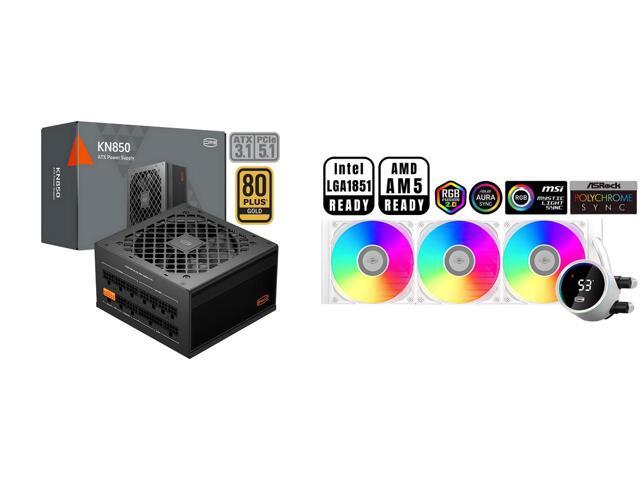 PCCOOLER CPS KN850 Fully Modular Power Supply, 80 PLUS Gold 850W PSU, Native 12V-2x6 Connector, ATX 3.1 & PCIe 5.1 Ready, Dual CPU Power Cables, 105°C Rated Japanese Capacitors, P3-KN850-G1F and 1 x PCCOOLER CPS DA360 Pro ARGB Digital AIO CPU Liquid Cooler, 360mm Radiator, 300W TDP, 270° Rotatable Digital Display, Infinity Halo ARGB Effect, for Intel LGA 1851/1700/1200/115X & AMD AM5/AM4, White