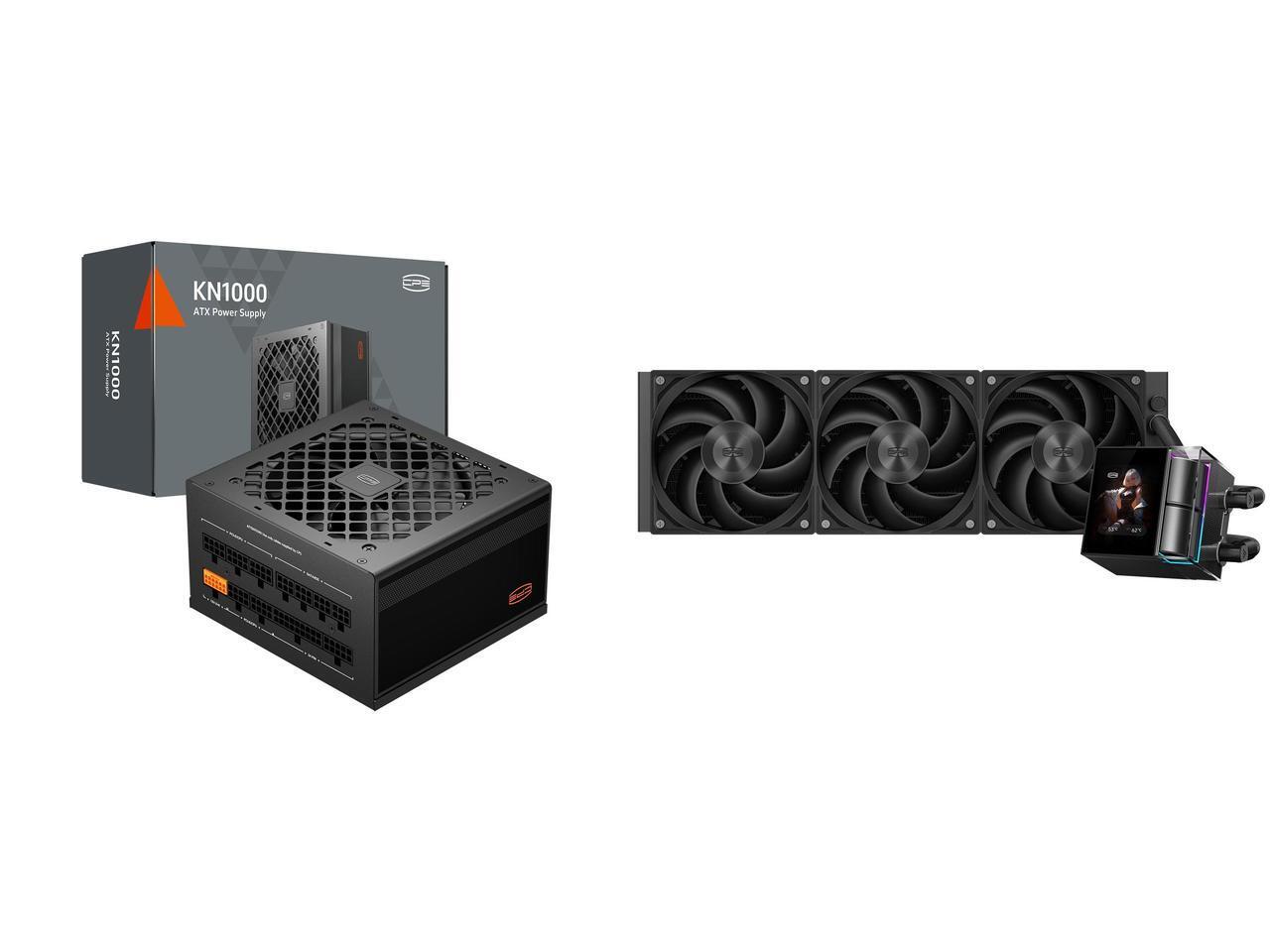 PCCOOLER CPS KN1000 Fully Modular Power Supply, 80 PLUS Gold 1000W PSU, Native 12V-2x6 Connector, ATX 3.1 & PCIe 5.1 Ready, Dual CPU Power Cables, 105°C Rated Japanese Capacitors, P3-KN1000-G1F and 1 x PCCOOLER CPS DS360 Display AIO CPU Liquid Cooler, 360mm Radiator, 315W TDP, ARGB LEDs & Customizable 2.4" IPS LCD Display, Ceramic Bearing, for Intel LGA 1851/1700/1200/115X & AMD AM5/AM4, Black